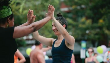 The combination of yoga and cardiovascular exercises provides a holistic approach to weight loss, effectively addressing both physical and mental aspects. While yoga improves flexibility and core strength, cardio exercises enhance heart health and boost metabolism. Engaging in this dual regimen allows individuals to experience the benefits of both practices simultaneously, which can lead to greater calorie burning. Cardio sessions can take various forms, such as running, cycling, or swimming. Adding a yoga session can complement your cardio workout by fostering relaxation and reducing stress levels. When stress is reduced, the body is less likely to store fat. To maximize effects, aim for a balance between intense cardio workouts and yoga sessions focusing on breath control, stretching, and mindfulness. The harmonious blend encourages a sustainable lifestyle change rather than a short-term fix. Many people find that incorporating both modalities enhances their overall fitness experience, promoting a sense of well-being and satisfaction, which is essential for maintaining a healthy weight over time. Therefore, folding yoga into a cardio schedule may result in successful weight loss and improved overall health.