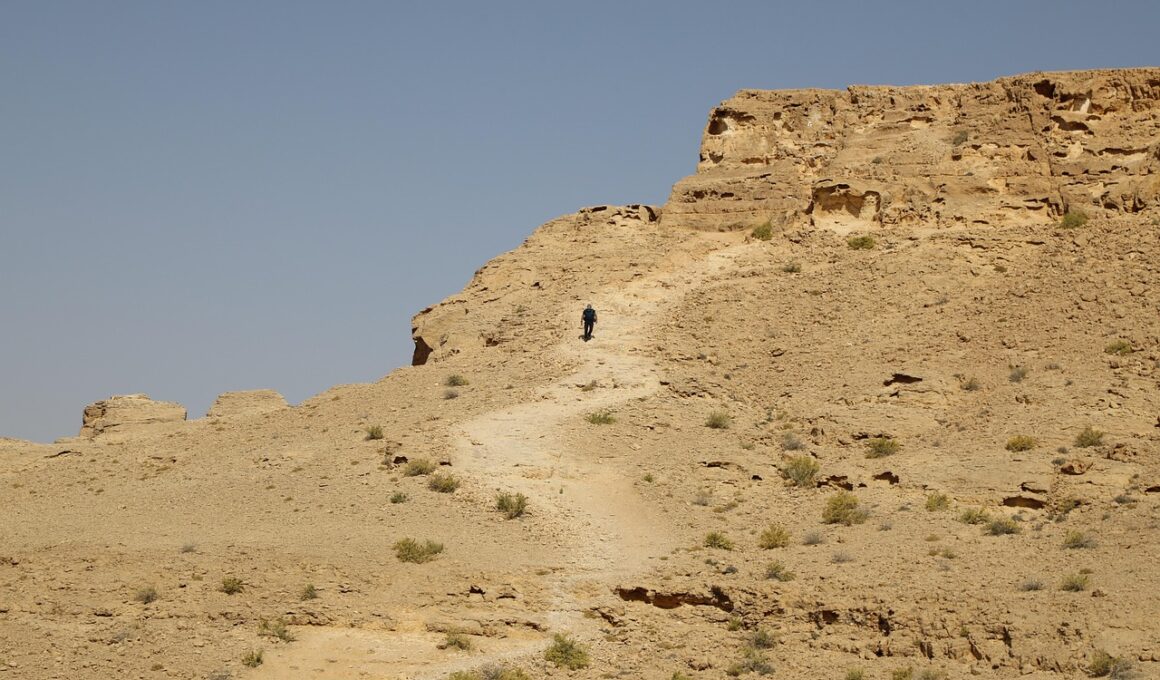 Endurance training is the cornerstone of any desert trekking fitness plan. As you strive for improved stamina, it’s crucial to incorporate long-distance hiking sessions into your routine. Gradually increase the distance each week until you reach your desired goal. Aim for at least one long hike weekly to build muscular and cardiovascular endurance. Incorporating uphill climbs and uneven terrains during hikes will closely mimic the conditions experienced in the desert. Mixing in shorter, more intense hikes can provide additional endurance benefits as well. Cross-training can also enhance your endurance; activities such as cycling, swimming, or rowing can build aerobic capacity while reducing injury risk. Maintaining an active lifestyle through various activities can keep your body engaged and ready for the challenges of the desert. Focusing on maintaining a steady pace will help you develop endurance over time. Additionally, consider joining local hiking clubs for motivation and support, as they can offer valuable insights and encouragement. Step up your training to ensure that you are adequately prepared for the rigors of desert trekking, maximizing both enjoyment and safety during your adventures.