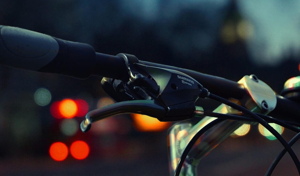 When night riding, cyclists must also prioritize visibility for both themselves and others. Wearing reflective gear can significantly enhance your presence on the road. Lightweight vests that contain reflective strips help in various environments and importantly, enhance your overall safety during less visible conditions. Furthermore, integrating the use of bike lights with strategic reflective gear creates a higher visibility standard. Visibility ranges depend on the environment, so the use of comprehensive lighting and reflective clothing improves safety. Explore options like reflective stickers for helmets or shoes. Additionally, ensuring the placement of the bike lights is effective can influence visibility dramatically. Cyclists should position the front light to illuminate the immediate surroundings and the rear light to be highly visible from a distance. Keeping them clean helps maintain performance quality. Always ensure that the lights are charged and working properly prior to heading out for a night ride. Ultimately, by combining bike lights and reflective apparel, cyclists can adopt a proactive approach to their safety, making journeys enjoyable while ensuring they remain safe on every ride.