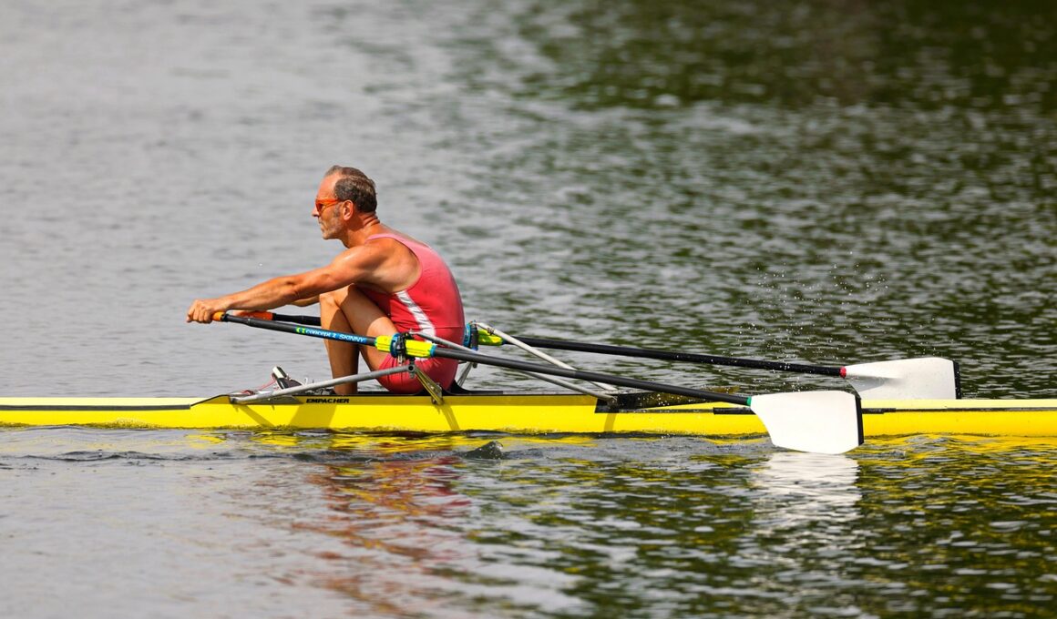 Integrating rowing workouts into your existing exercise regimen is both simple and beneficial for maximized results. To start, consider designing a balanced weekly program that includes rowing alongside strength training and flexibility work. Finding the right frequency for rowing is important; many find two to three sessions per week works best for complementing other workouts. Moreover, combining different training modalities such as high-intensity interval training (HIIT) with rowing can yield exceptional results in both fat loss and cardiovascular health. For example, alternating between short, intense bursts on the rowing machine combined with recovery intervals can elevate heart rates. Additionally, it is essential to set specific goals for rowing sessions, be it time, distance, or pace. Establishing clear objectives can provide motivation and keep you on track. Over time, as you measure your progress, you can increase intensity, which will encourage more significant improvements. Joining rowing classes or finding a workout partner can also add an element of accountability and camaraderie to the process. Teams can help individuals stay focused, turn workouts into social events, and provide encouragement when needed.