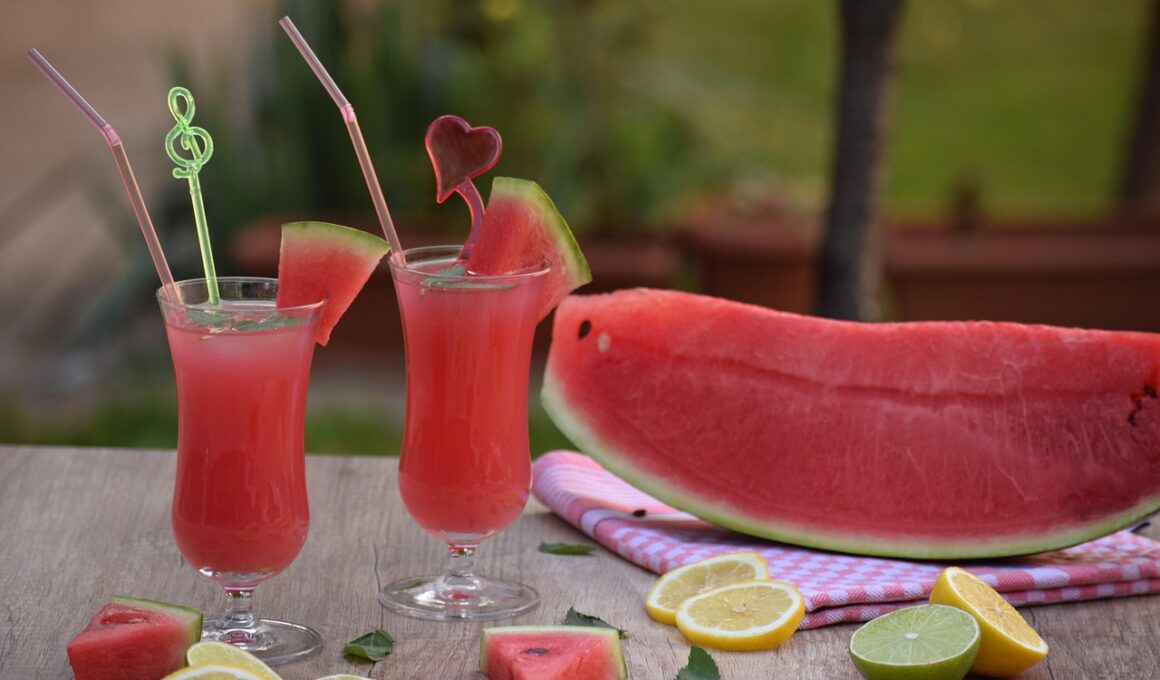 Maintaining hydration while bodybuilding is crucial for overall performance and recovery. Bodybuilders should integrate various hydrating foods into their routines. One practical strategy is to create a hydration diary where they can track their water intake, including the hydrating foods consumed. Effective hydration means not just drinking adequate water but optimizing the diet for maximum hydration. Experimenting with fruit-infused water or smoothies can be enjoyable ways to increase fluid intake while adding flavor. Planning hydration efforts around workouts is vital too; consuming hydrating snacks pre- and post-workout can maximize energy levels and aid recovery. Additionally, keeping a dedicated cooler with hydrating foods like watermelon slices or vegetable dips for easier access can solidify those healthy habits. Further, by sharing hydration practices with fellow bodybuilders, one could benefit from collective knowledge and empowerment. Encouraging discussions around favorite hydrating foods creates motivation and accountability. Therefore, integrating hydration aspects into daily routine ensures bodybuilders remain well-hydrated and healthy while pursuing their fitness goals. As a result, focusing on hydration can elevate performance and recovery for successful bodybuilding pursuits.
