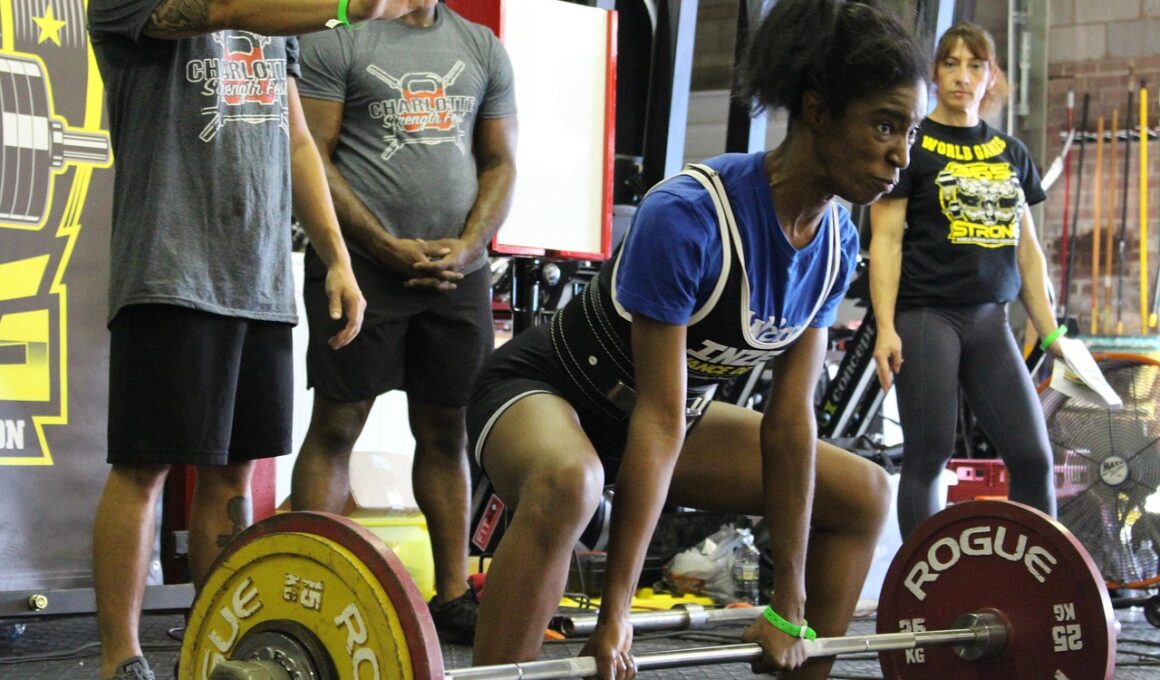Before beginning powerlifting, it’s crucial to understand the significance of form and technique. Starting with lighter weights ensures you develop the correct movements, which is vital for preventing injuries. Enrolling in a local gym with knowledgeable trainers may benefit beginners greatly. Trainers often provide helpful feedback, helping ensure techniques are perfected before tackling heavier weights. In addition to proper guidance, utilizing resources such as online videos and forums can strengthen your understanding of each lift. Many female powerlifters share their experiences and tips, creating a wealth of information accessible to all. Strategically incorporating strength training into your routine is equally important. A well-structured program typically includes progressive overload, where weights are gradually increased; this encourages muscle growth and strength. Listening to your body is vital, allowing for sufficient rest and recovery is necessary for muscle repair and growth. Combine powerlifting with a well-balanced diet filled with micronutrients and protein to fuel your workouts effectively. Engaging with the local powerlifting community can provide ongoing motivation, camaraderie, and encouragement. Women supporting women in strength training creates an empowering environment.
